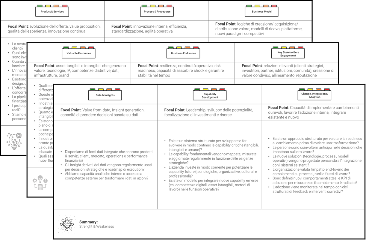 Inoltre il tool fornisce ulteriori prospettive, insight data-driven e schemi aggiuntivi rispetto ai soli strumenti cartacei